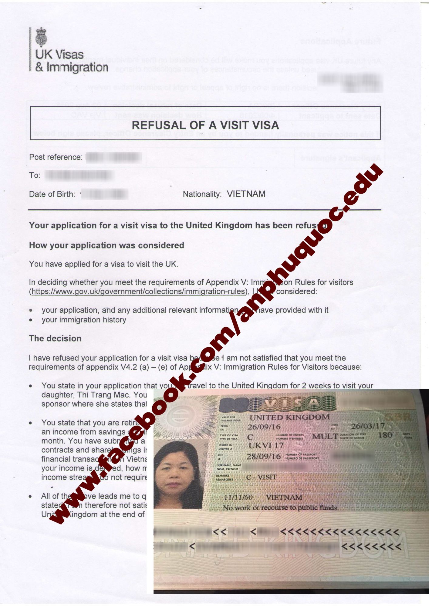 Được sự tin cậy và tín nhiệm của con gái cô chú hiện đang sinh sống tại Anh quốc liên hệ giúp đỡ, nhân viên An Phú Quốc đã tìm hiểu, nghiên cứu hồ sơ của cô chú và phát hiện nhiều điểm bất lợi, sai xót trong hồ sơ dẫn đến việc Cục biên phòng Anh (UKBA) hiểu lầm và từ chối cấp visa trong lần đầu cô chú nộp hồ sơ. Với năng lực vượt trội cùng kinh nghiệm hơn 10 năm trong lĩnh vực xin visa Anh Quốc, An Phú Quốc đã nhanh chóng tìm ra vấn đề và đưa ra cách giải quyết xác đáng. Chỉ sau 2 tuần, cô chú đã vui mừng thông báo kết quả như mong đợi.
