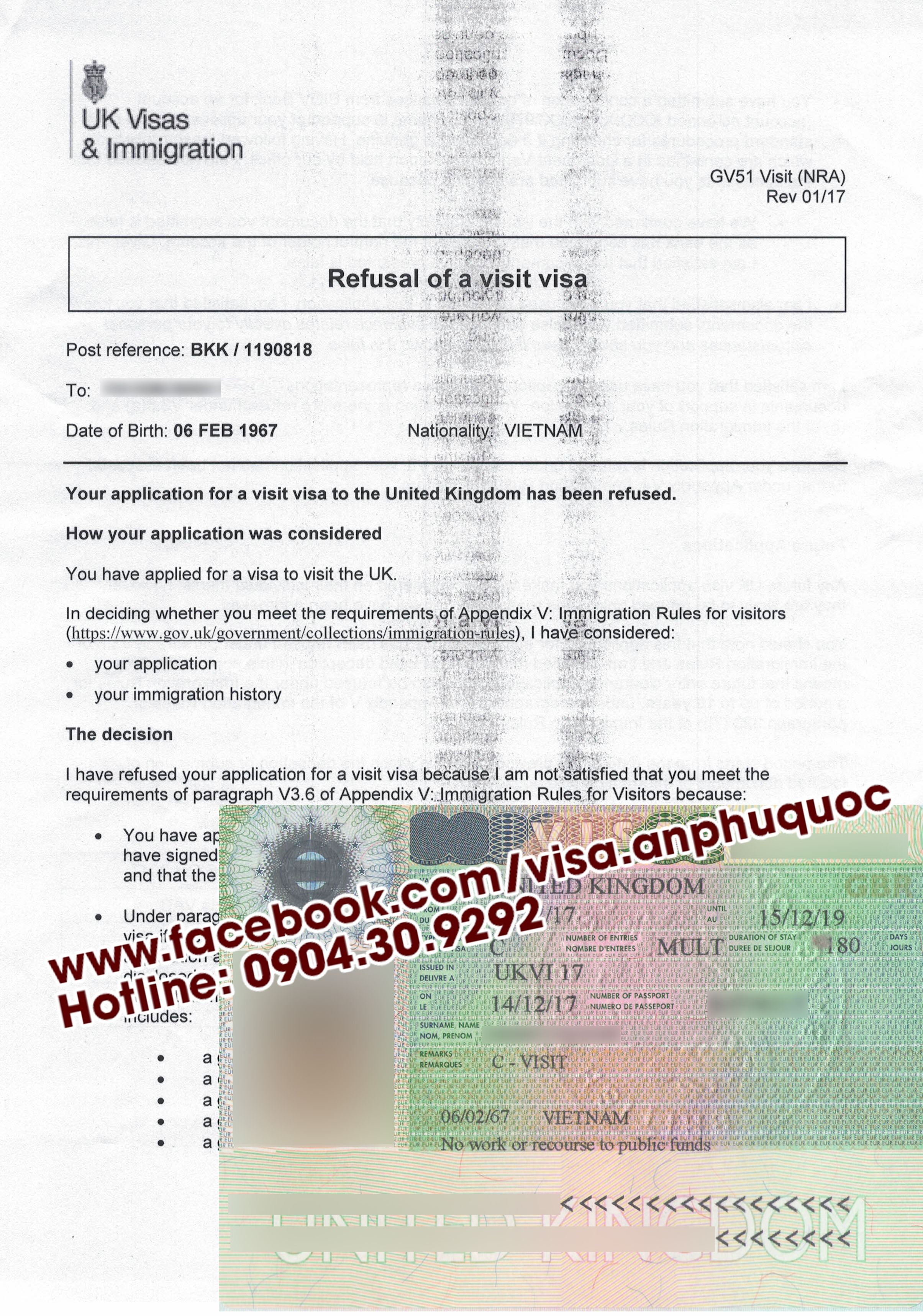 Thư từ chối và visa thăm thân Anh quốc của cô Thảo