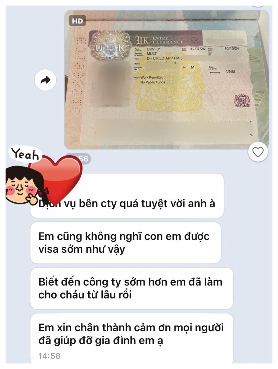 "Em không nghĩ là con em nhận visa nhanh như vậy, nếu biết đến công ty sớm hơn thì em đã làm cho cháu từ lâu rồi!!"