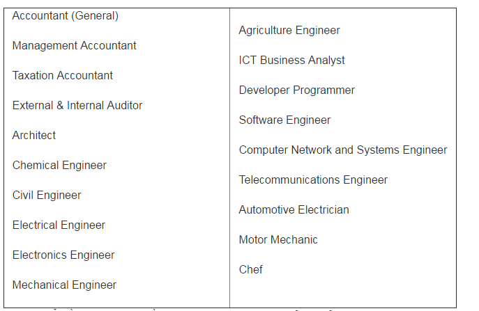 Các ngành nghề phổ biến có thể nộp làm việc và định cư tại Úc đối với công dân Việt Nam: