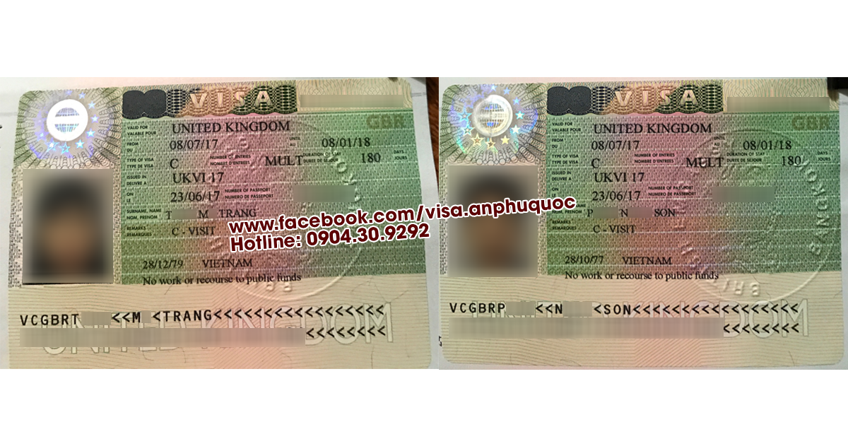Tấm visa thăm thân Anh quốc của vợ chồng anh Sơn chị Trang